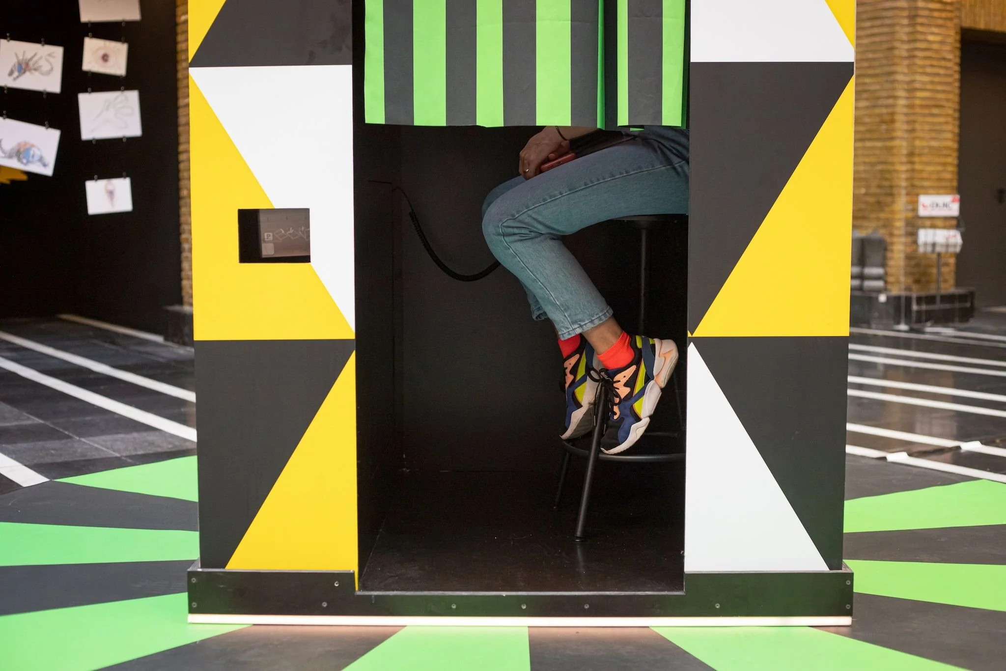 The first intervention is a Ctrl.Alt.Img travelling interactive booth that mimics the form and dynamics of a playful photo booth. The booth invites participants to be photographed and analysed by AI while also presenting fleeting documentary footage. This footage offers a compelling first-hand account of how bias affects religious and ethnic-minority communities. Participants leave the booth with a digital memento capturing an AI-generated image of themselves.