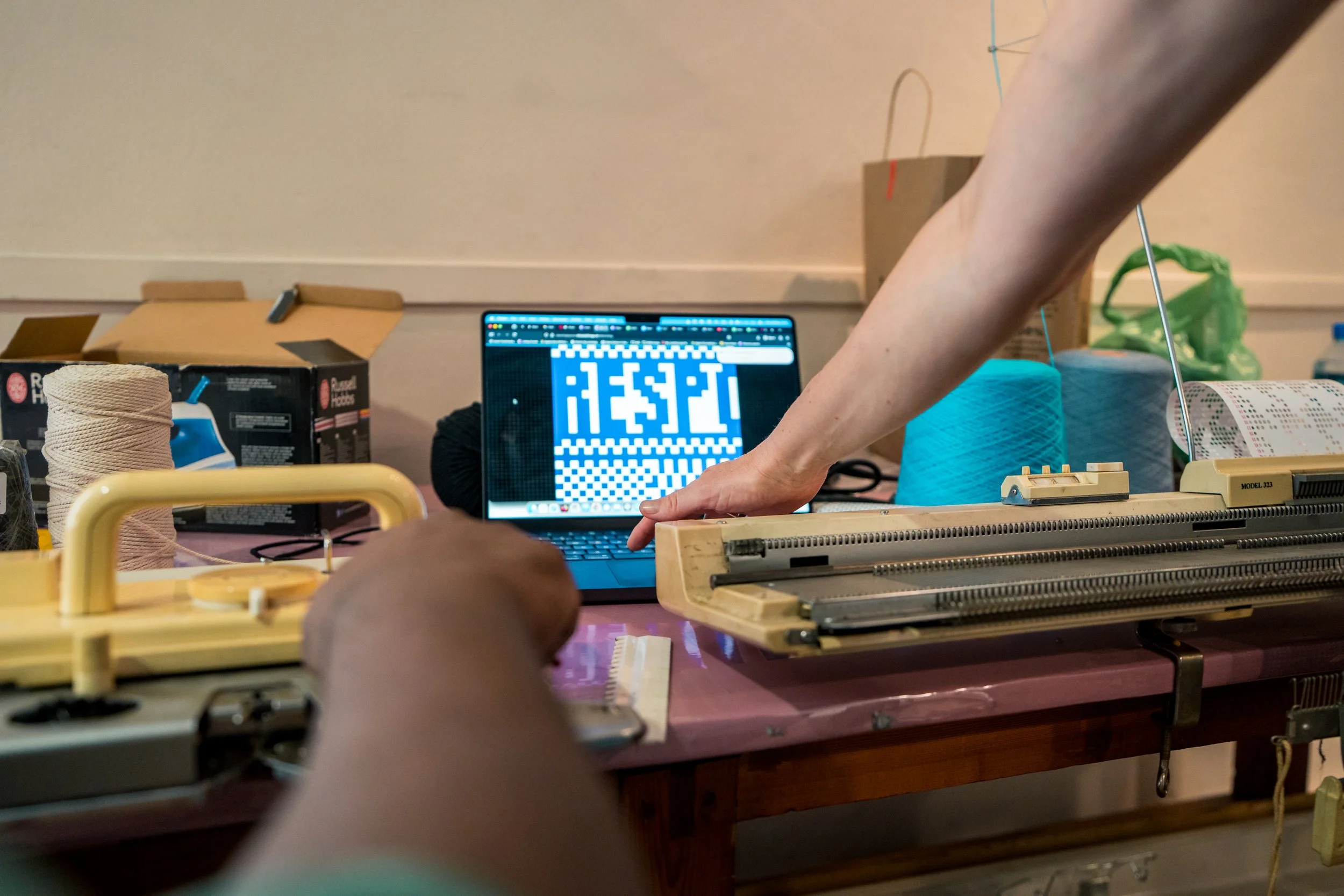In a further experiment we played with textures, and specifically where the material meets the digital through a knitting machine experiment (based on our previous Toolkit for the Inbetween project). We are speculating to see what’s possible for future exhibitions and interventions that use digital tools but without losing any of the unique materiality of the current museum ethos. How AI relates to an existing material archive of photos, artefacts and maps is a central and urgent question in this project.