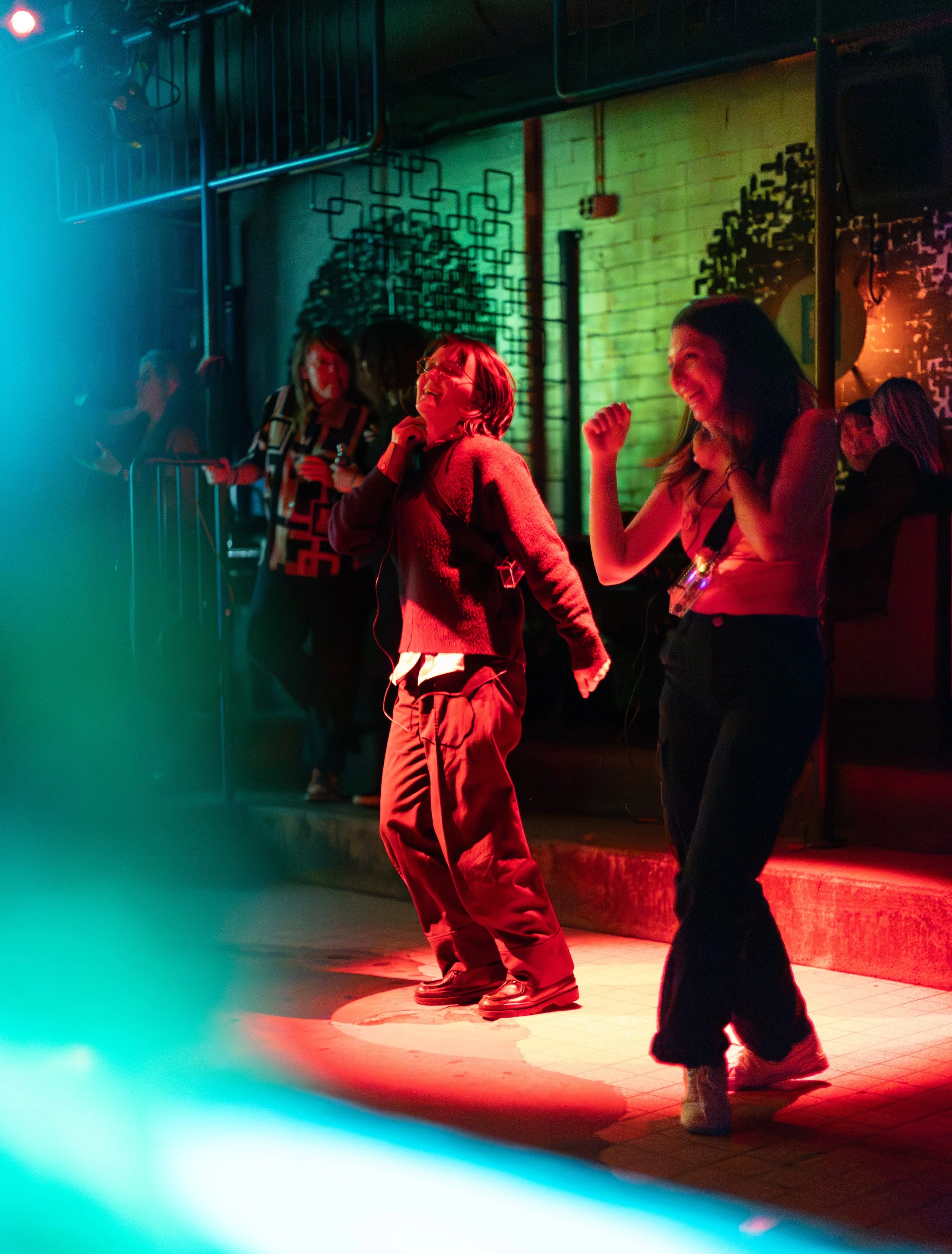 On 3 June 2025, we held our first prototyping session. We invited an energetic group of test participants to iconic music venue De Effenaar. Participants wore heat-sensing wearables in a dance battle with ever rising body heat. After the session, we gathered for a reflection on the participants' experience of the gameplay. The launch of the this work will be on 2 October at the opening night of the Bloody Beautiful Festival at music venue Doka in Amsterdam. We hope to see new and familiar faces on the dance floor.