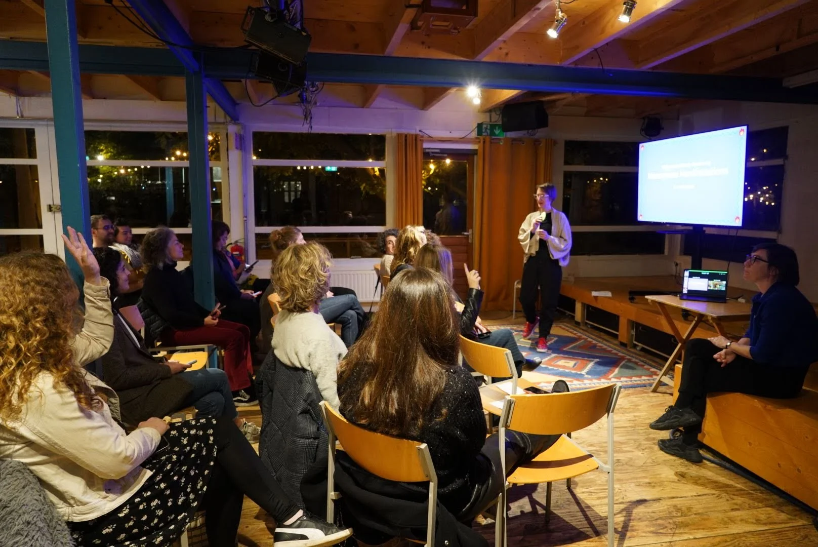 Gossip Session #5: Menopause Manifestations examined how cultural myths and stereotypes about menopause are sustained by the media. The evening unfolded in two acts. First, Emily Dickinson, head of research at Opinium Amsterdam, presented findings from our joint Bloody Beautiful menopause survey. This nationally representative questionnaire aimed to capture Dutch attitudes, feelings, and beliefs about menopause, with a particular focus on how media—TV, radio, print, and online platforms—shapes public perception. Full results appear later in this book.
